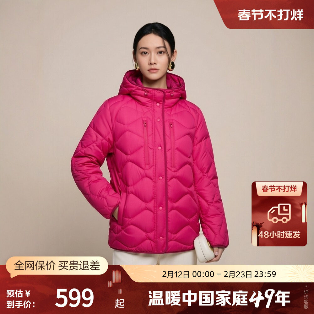 波司登2024秋季女短款轻暖轻薄鹅绒连帽复古潮流葫芦纹羽绒服