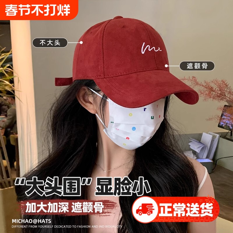 帽子棒球帽大脸显脸小宽帽檐女加大加深顶红色鸭舌帽圆脸潮流宽檐