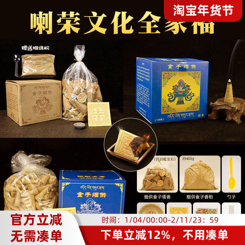 烟供食子塔香喇荣108味五色布 天然西藏手工家用藏香香熏火供用品