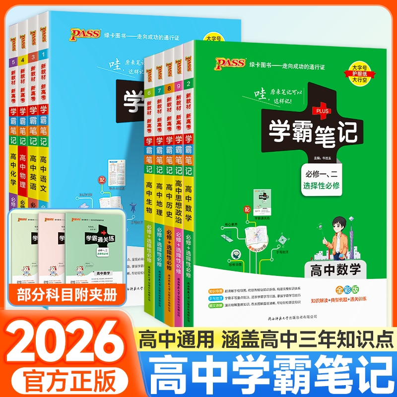 2026版学霸笔记高中语文数学英语物理化学生物政治历史地理任选pass绿卡图书新教材新高考高一高二高三高考提分笔记复习资料教辅书