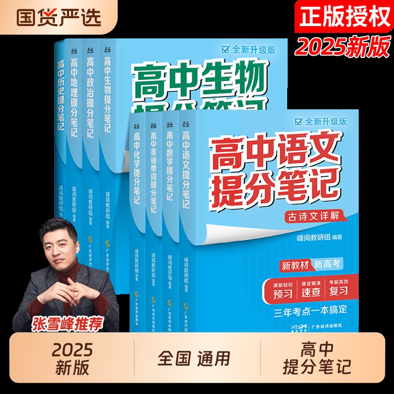 2025新高考张雪峰高中提分笔记数学语文古诗词英语词汇化学生物政治历史地理物理公式教材高一二三基础知识手册思维导图官方旗舰店