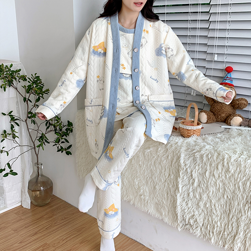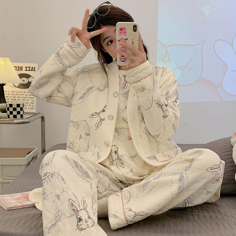 空气棉三件套月子服冬厚款11月份12纯棉家居服哺乳孕妇睡衣秋冬季