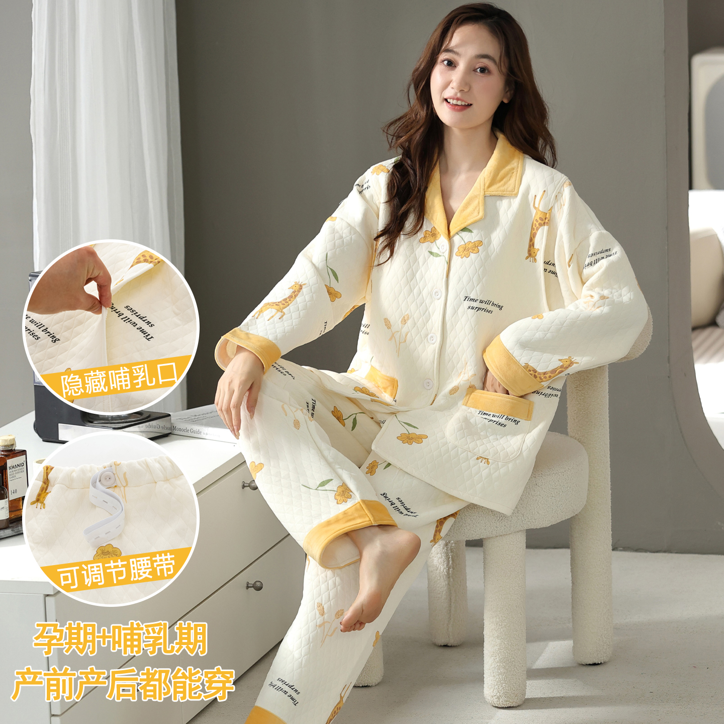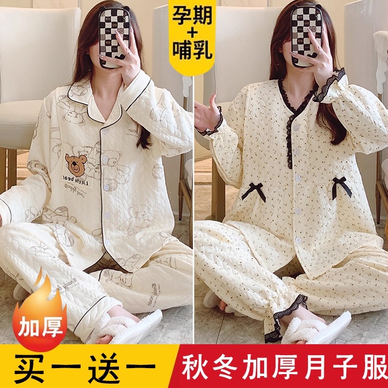 月子服秋冬季产后纯棉哺乳睡衣空气棉孕妇睡衣秋冬11月份产妇睡衣