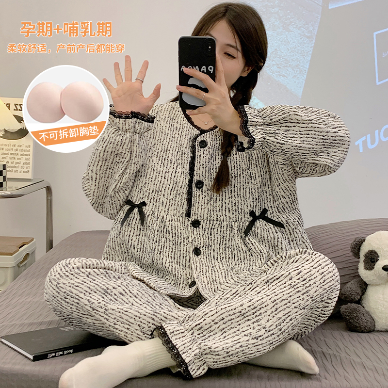 带胸垫月子服纯棉全棉吸汗产后11月份哺乳孕妇睡衣秋冬产妇家居服