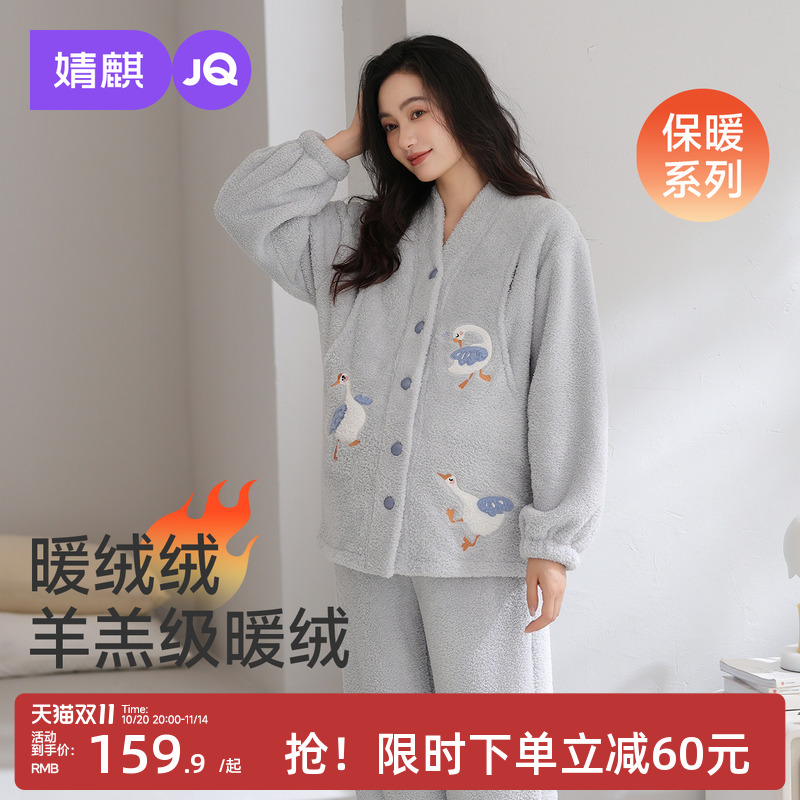 婧麒孕妇睡衣秋冬款月子服产后加厚加绒11月份保暖哺乳喂奶家居服