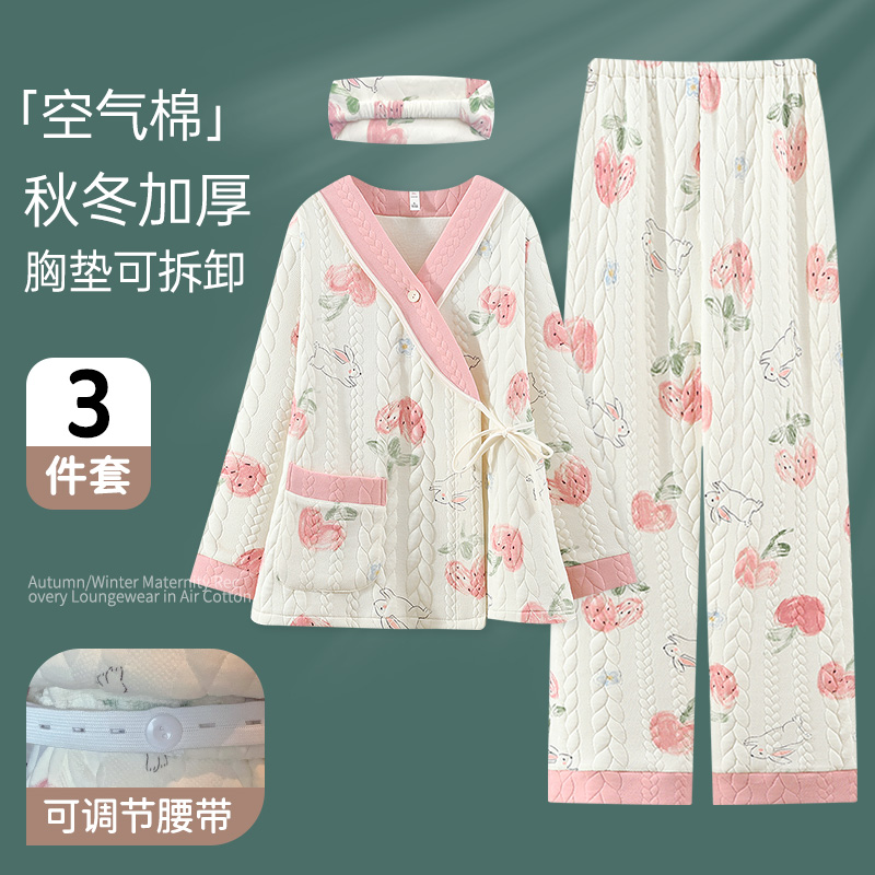 空气棉三件套月子服冬厚款11月份12纯棉产妇期哺乳孕妇睡衣秋冬季