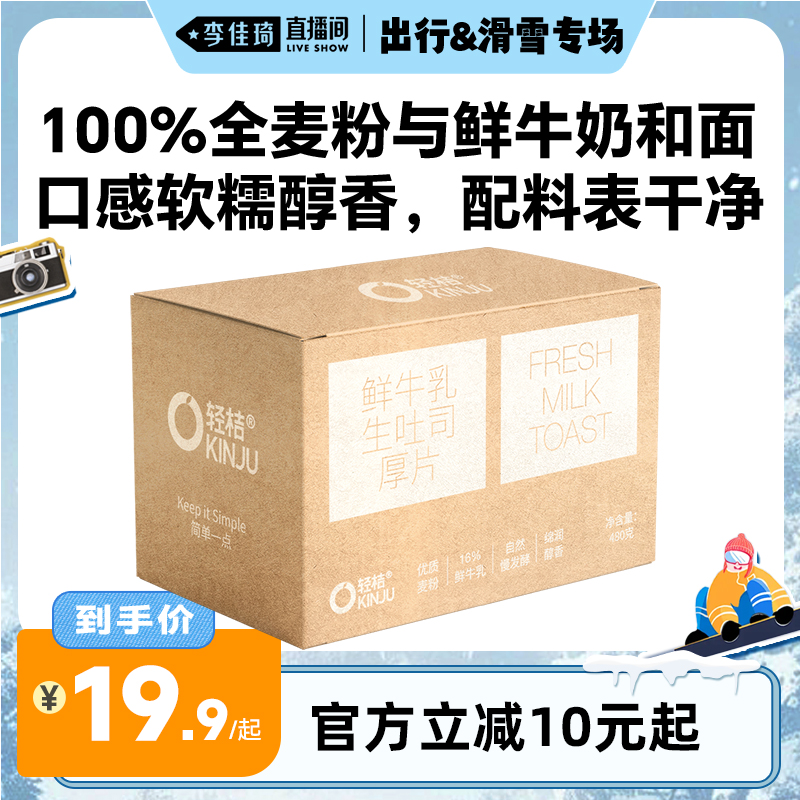 【李佳琦直播间出行&滑雪专场】轻桔鲜奶手工生吐司厚切全麦面包