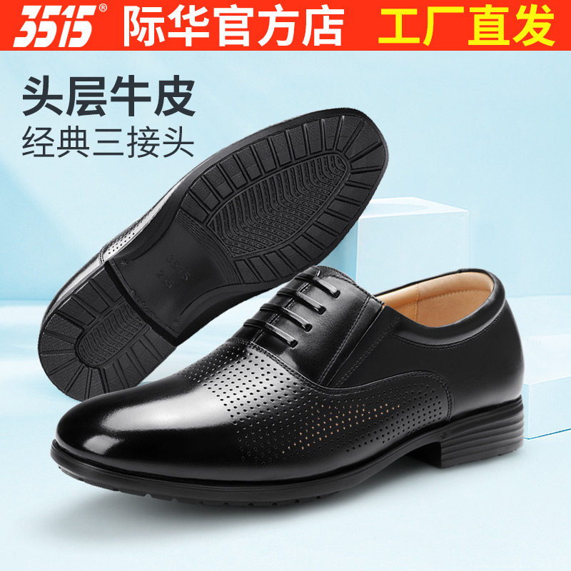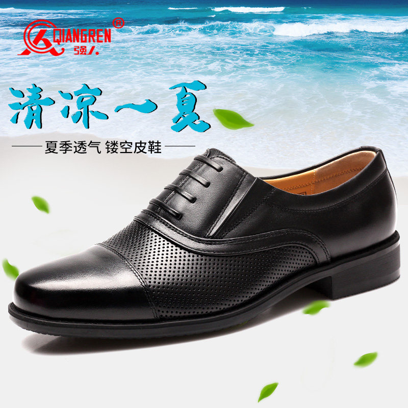 3515强人夏季镂空透气软底凉皮鞋男士正装皮鞋真皮耐磨商务休闲鞋
