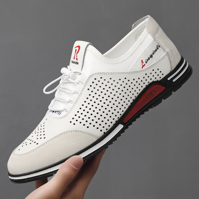 - 镂空皮鞋男 真皮