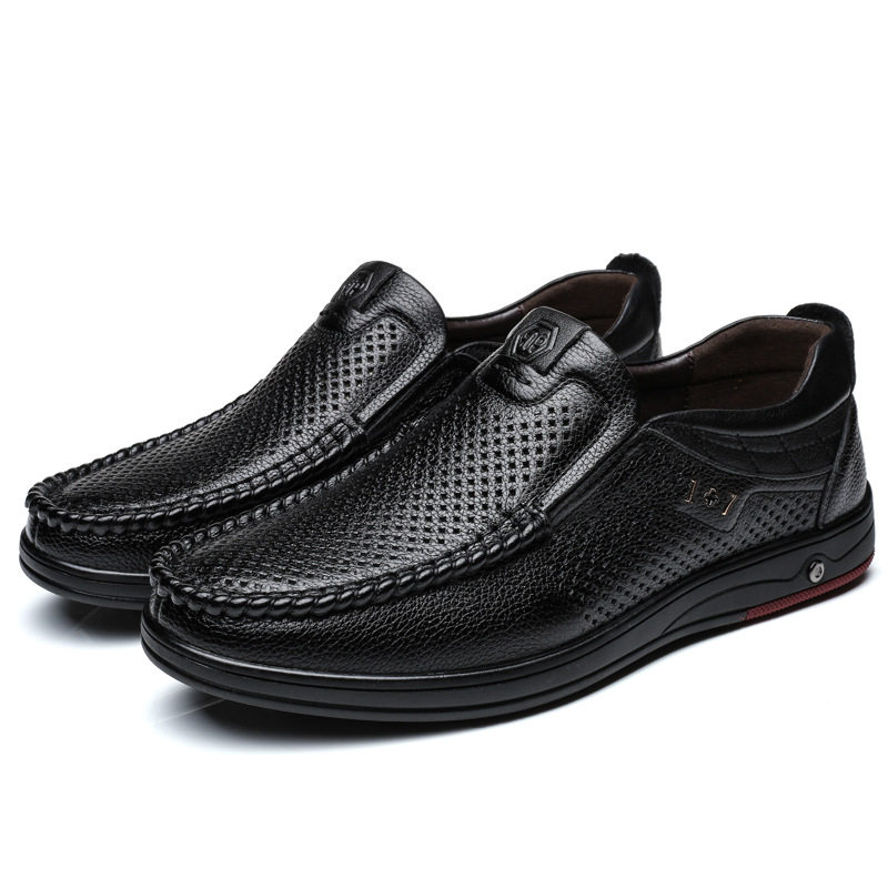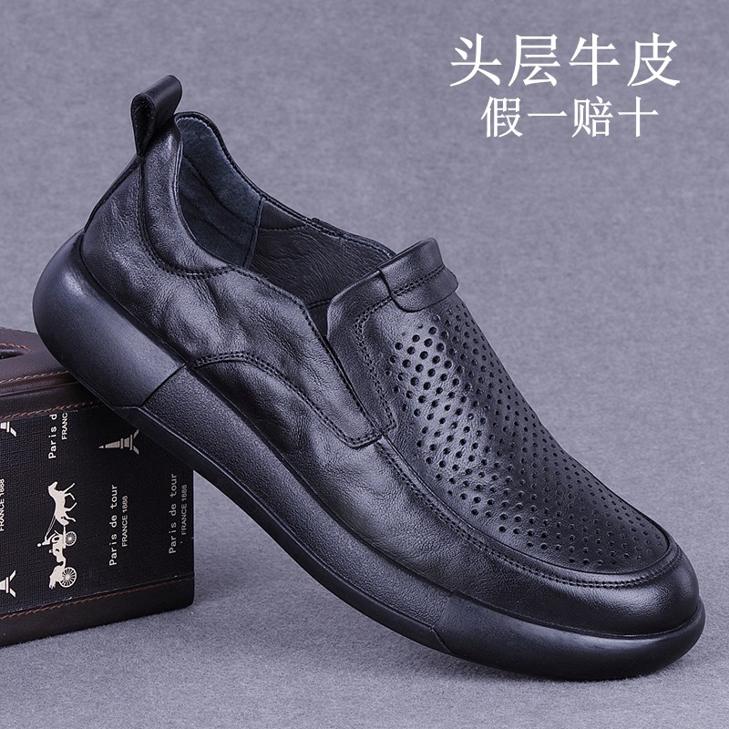 外贸皮鞋男2025春夏新款头层牛皮透气凉皮鞋男士软底休闲通勤皮鞋