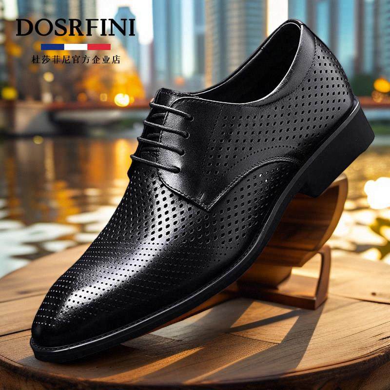 杜莎菲尼男鞋夏季镂空透气真皮打孔洞洞凉皮鞋男士商务正装皮鞋男