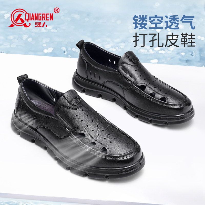 强人3515皮鞋男夏季真皮镂空洞洞鞋商务凉鞋休闲软底凉皮鞋男羊皮