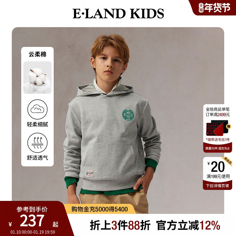【云柔棉】eland kids衣恋童装男女童卫衣25年春秋学院风连帽套头