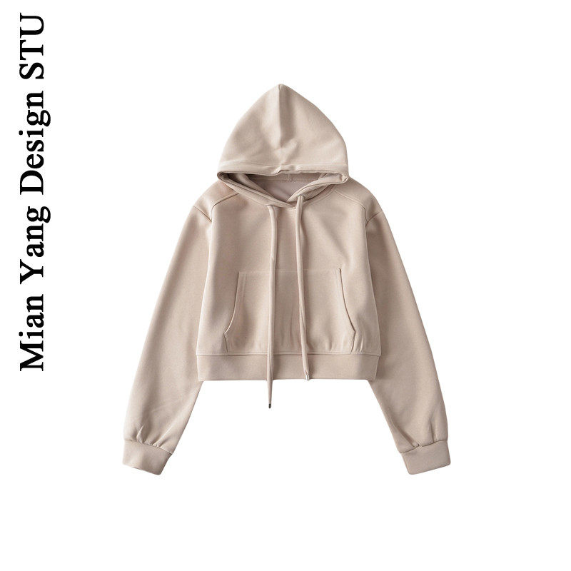 H5289外贸欧美学院风女生短款卫衣冬季新款连帽套头加绒休闲上衣