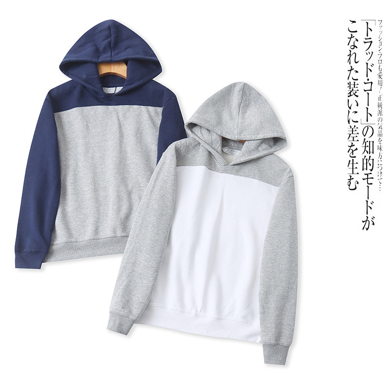 V4859外贸欧美学院风女生加绒卫衣冬季新款连帽套头拼色宽松上衣