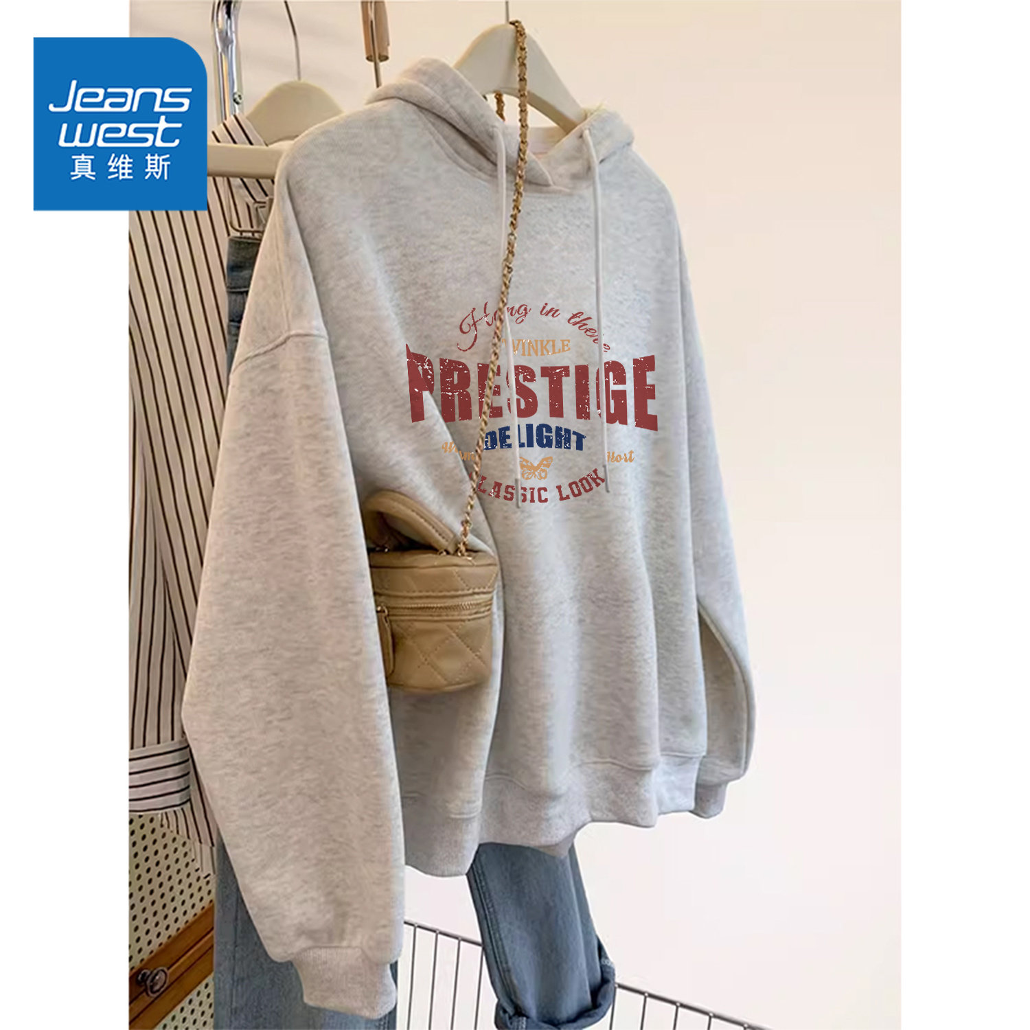 真维斯灰色连帽卫衣女2026春秋新款韩系学院风宽松百搭套头上衣W
