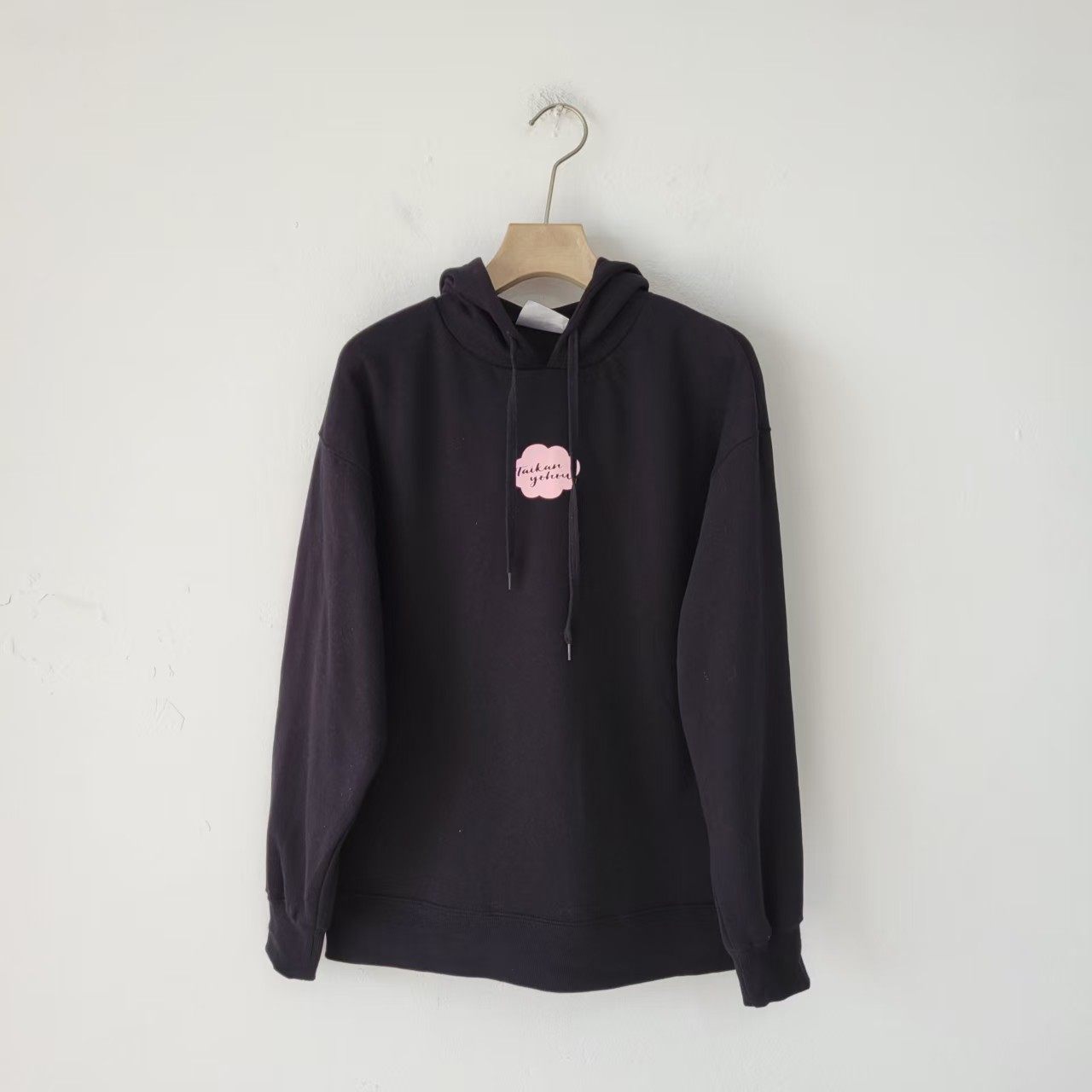 2款外贸日单连帽卡通印花学院风卫衣女长袖套头宽松休闲上衣黑色