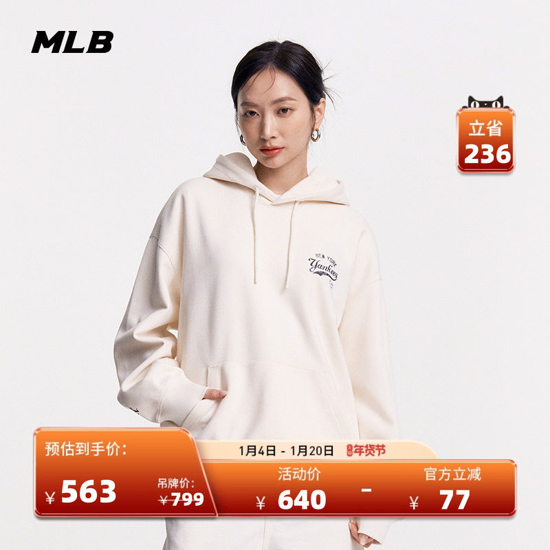 25新款MLB女子运动毛衣复古学院风连帽卫衣休闲套头衫3FKPV0454