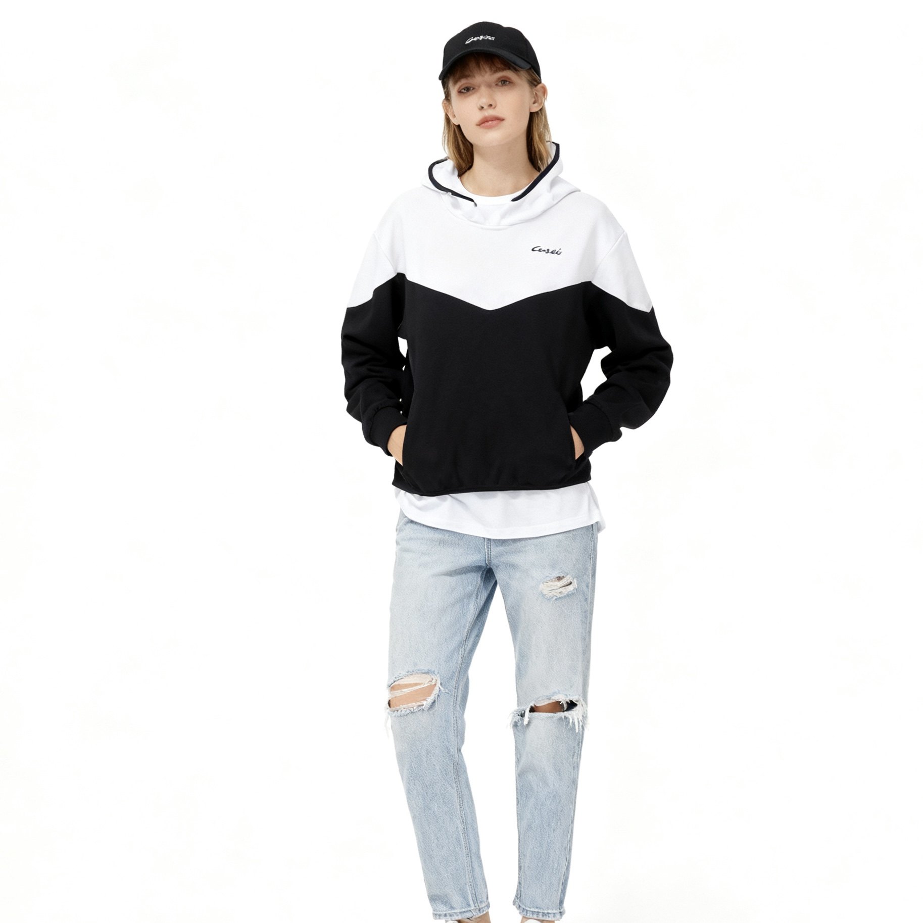 外贸欧美单女生休闲卫衣2025新款连帽套头拼色宽松学院风上衣