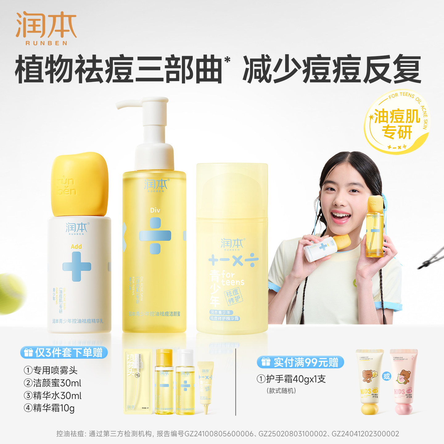 润本青少年控油祛痘精华爽肤水女孩去闭口粉刺缩毛孔学生护肤套装