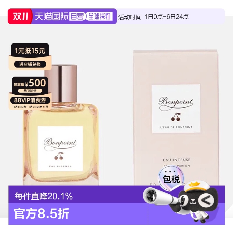 欧洲直邮Bonpoint朋博湾法国小樱桃玫瑰挚爱香水50ml馥郁柠檬女性