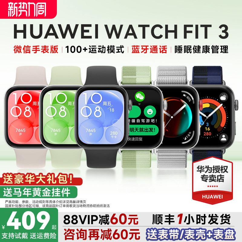 【咨询再减60元!】华为手表WATCH FIT3智能运动蓝牙通话手表长续航fit4监测心率ft3手环血氧fit3手表官方旗舰