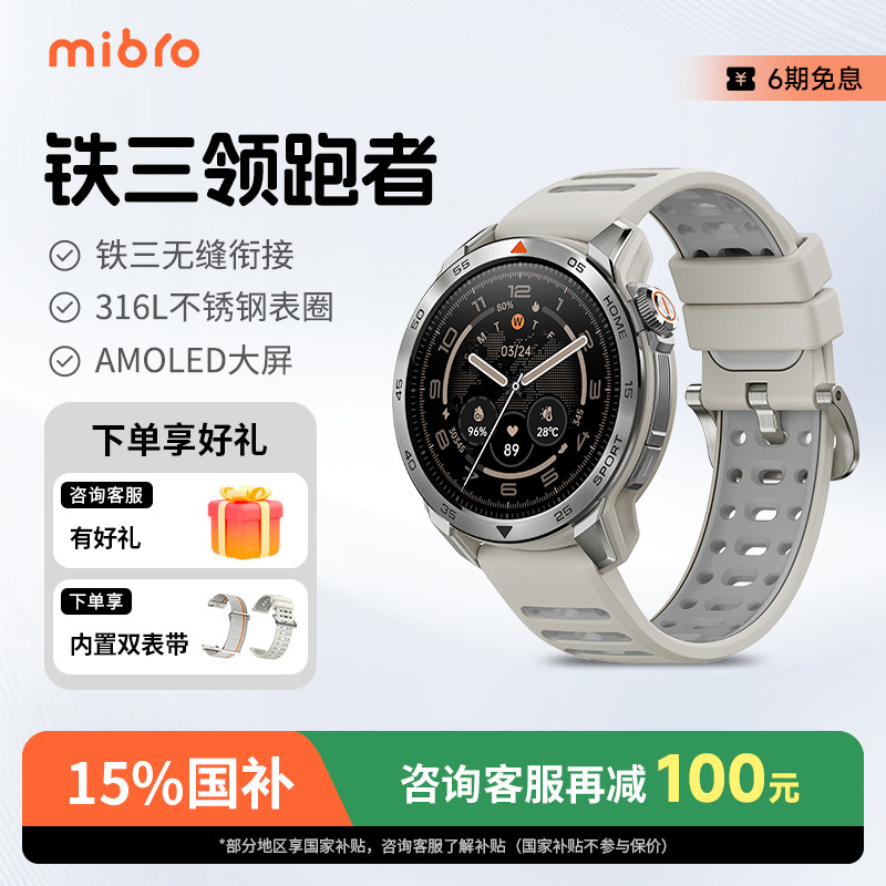 【政府补贴】Mibro铁三领跑者GS Pro2 铁三竞技运动手表智能户外跑步骑行游泳马拉松双频GPS心率监测