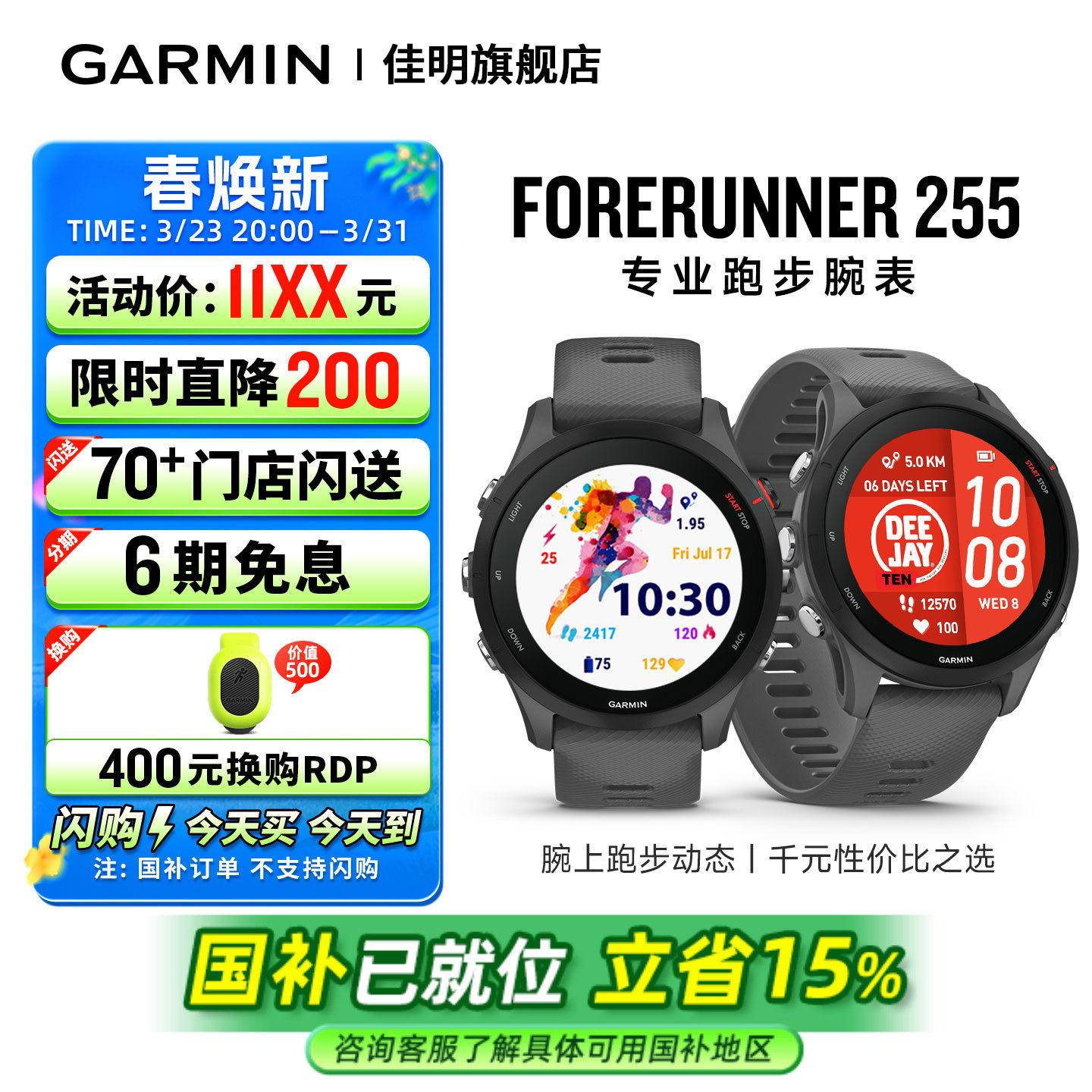 【补贴15%】Garmin佳明Forerunner255跑步手表马拉松越野骑行游泳徒步心率血氧睡眠双频多星GPS运动手环