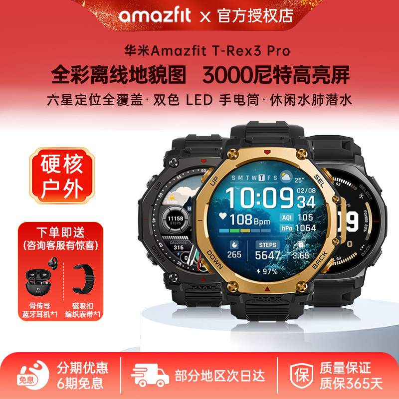Amazfit华米T-Rex3 Pro智能运动手表48mm专业户外骑行跑步登山越野游泳徒步双频GPS定位轨迹导航潜水手环腕表