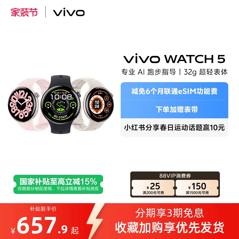 【国补至高15% 下拉跳转淘金币频道领优惠】vivo WATCH5智能手表新款官方正品运动心率血压功能