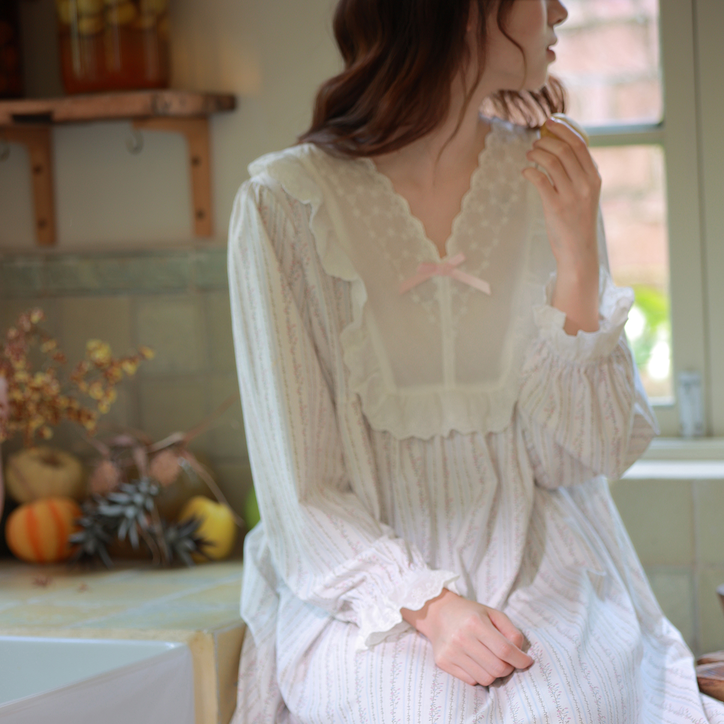 马克公主睡裙女春秋纯棉薄款长袖法式宫廷风裙子可外穿可爱家居裙
