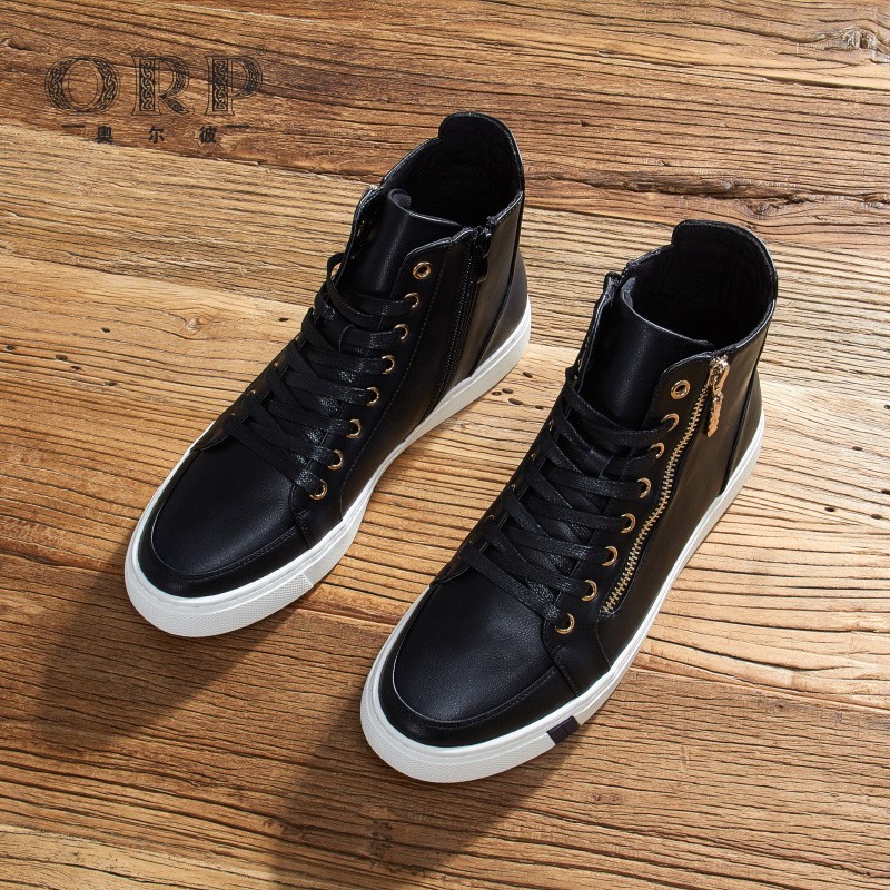 木林森男鞋2025冬季新款加棉百搭休闲皮鞋男内增高板鞋运动小黑鞋