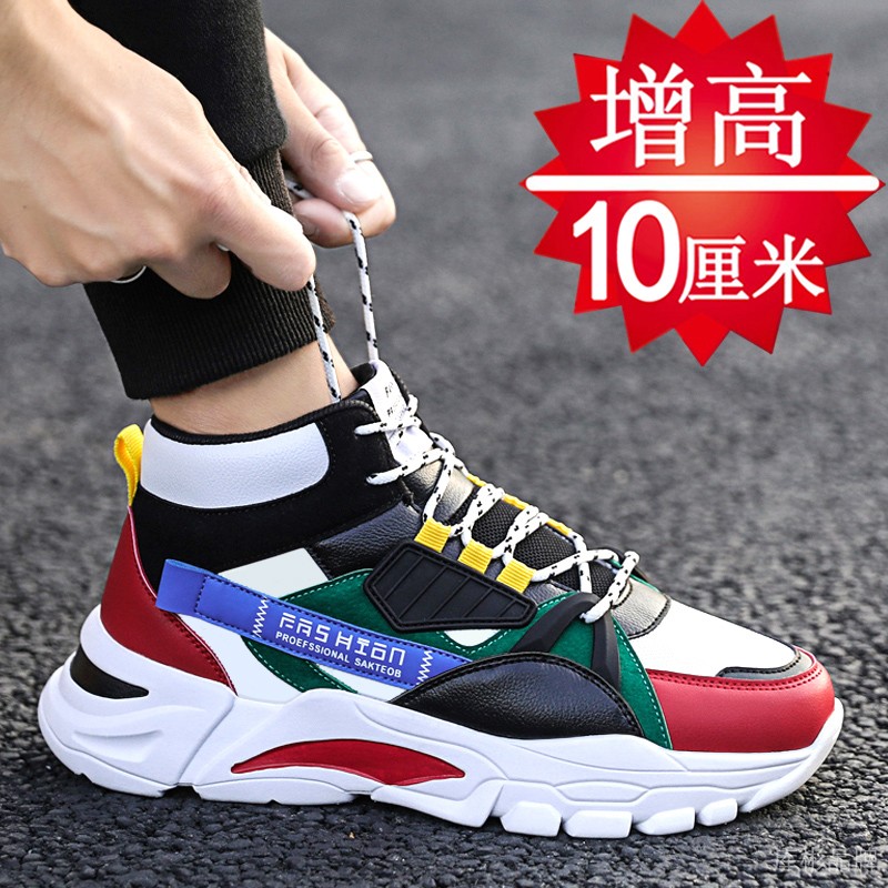 2020新款高帮鞋男内增高板鞋男士休闲鞋春秋透气男鞋韩版潮男鞋子