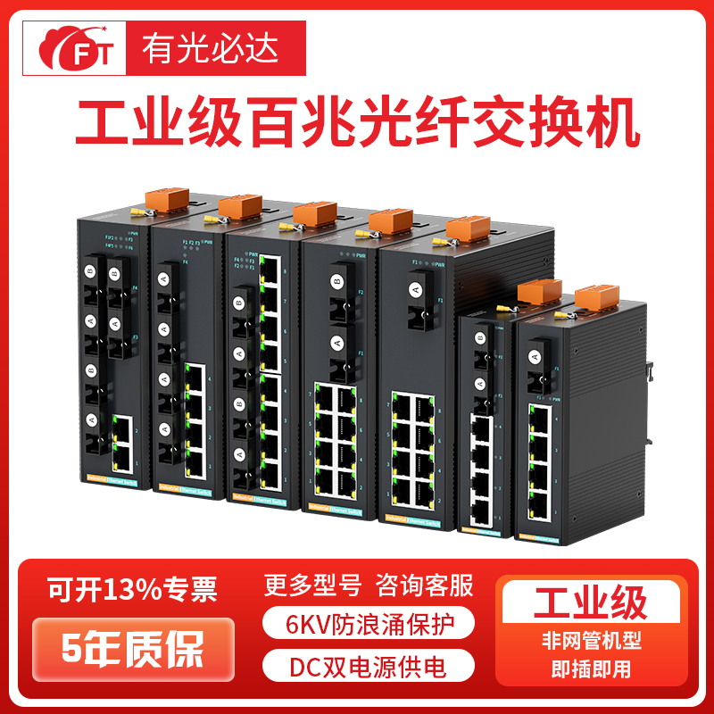 FT光必达百兆工业级交换机5/8/16/口工业级以太网交换机光纤交换机防雷导轨式安装