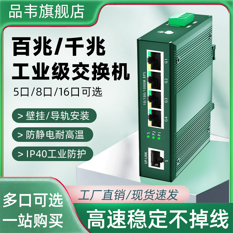 工业级交换机5口8口百兆千兆导轨式12V24V宽电压高低温壁挂导轨式交换机4口/16口/24口poe供电监控网络分线器