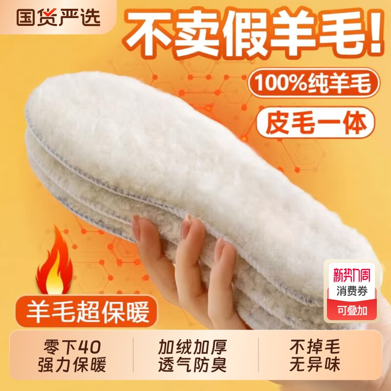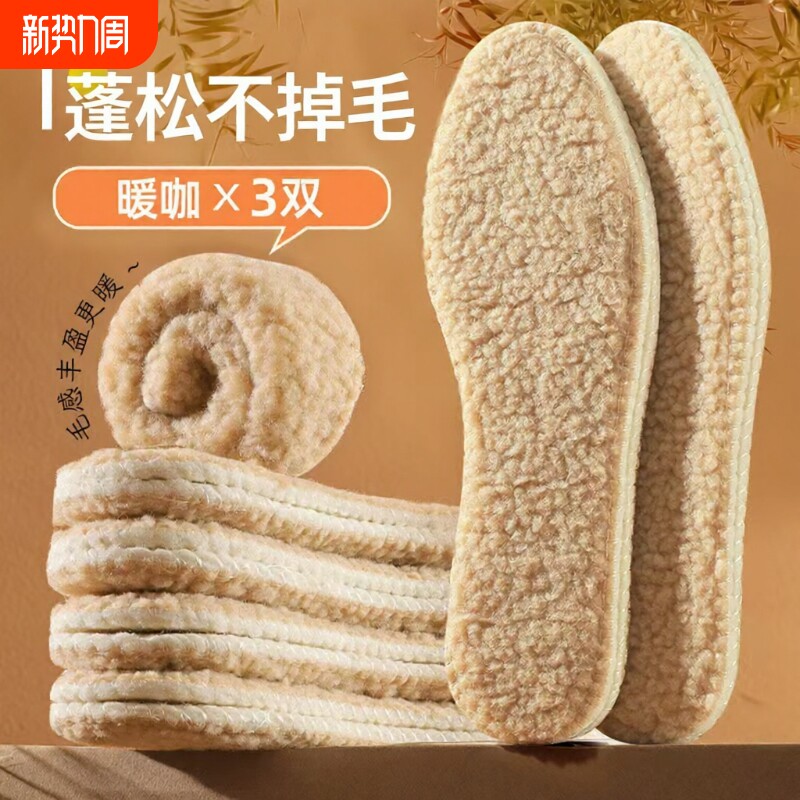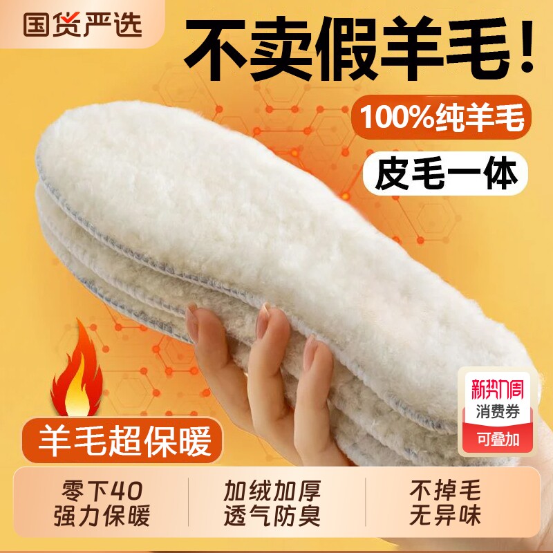 羊毛鞋垫皮毛一体澳洲羊毛100%纯冬季加绒加厚透气防臭防寒男女款