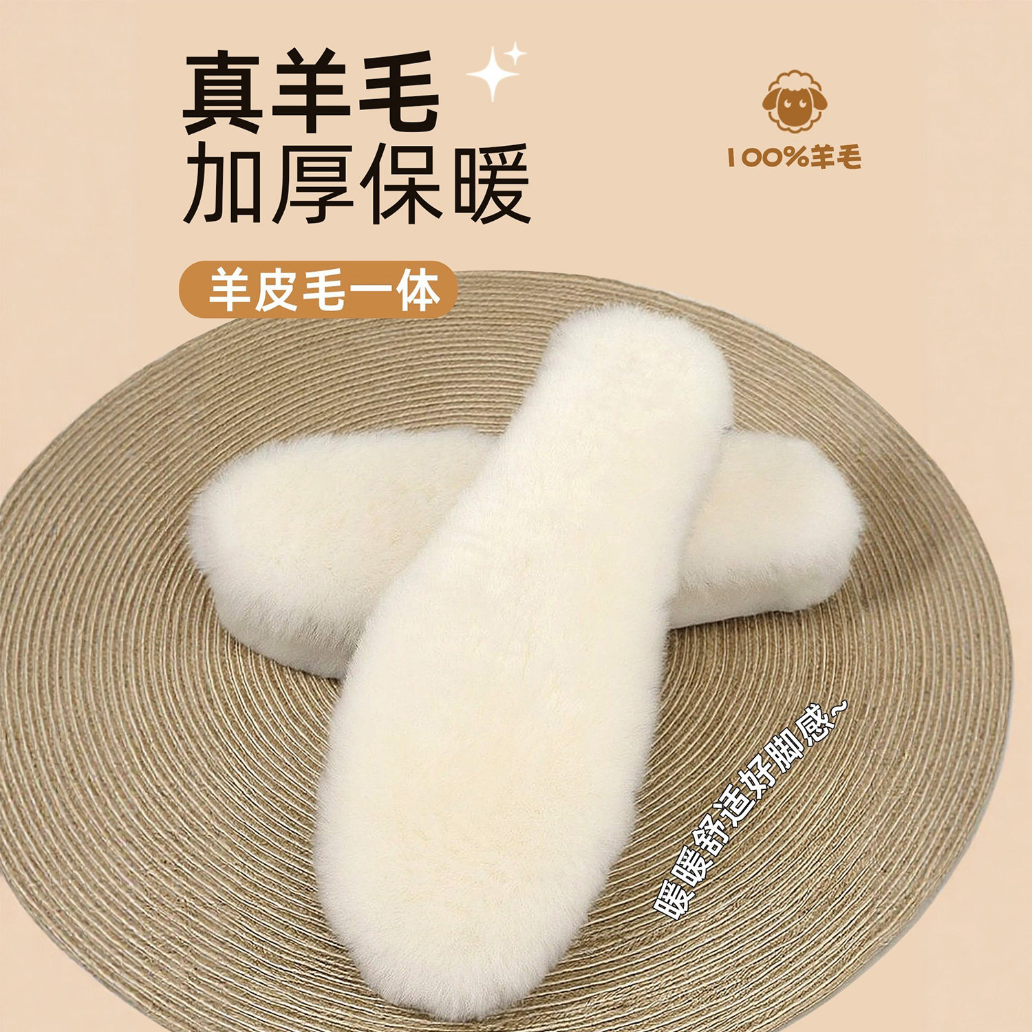 羊毛鞋垫皮毛一体真毛加厚保暖天然白色舒适毛毡透气吸汗男女鞋垫