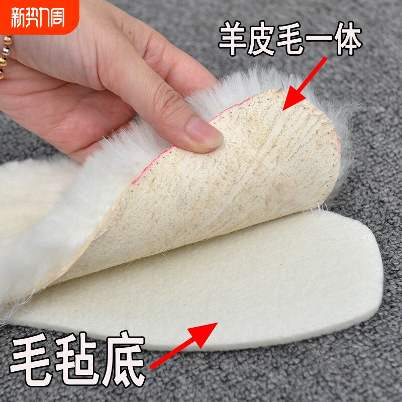 真羊毛鞋垫皮毛一体秋冬季棉鞋保暖防寒加绒加厚男女发热澳洲羊毛