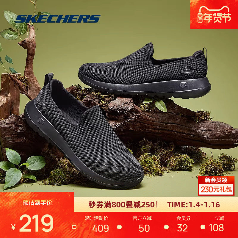 斯凯奇男鞋舒适一脚套休闲鞋轻便健步中老年百搭防滑运动鞋54609