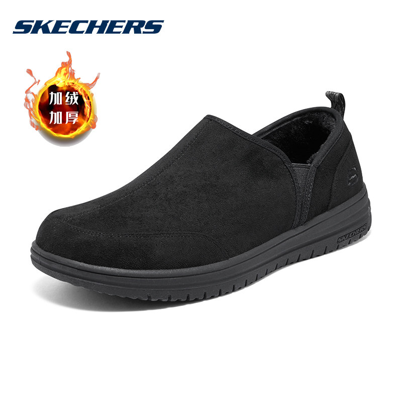 斯凯奇男鞋2025冬季新款加绒一脚蹬穿脱健步鞋中老年休闲鞋爸爸鞋
