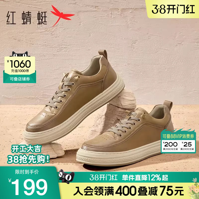 红蜻蜓男鞋春秋新款休闲板鞋男款系带平底舒适运动鞋男士低帮单鞋
