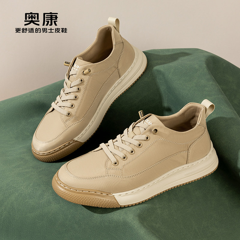 奥康小白鞋休闲板鞋内增高7cm踩屎感男鞋软底单鞋厚底鞋男款秋季