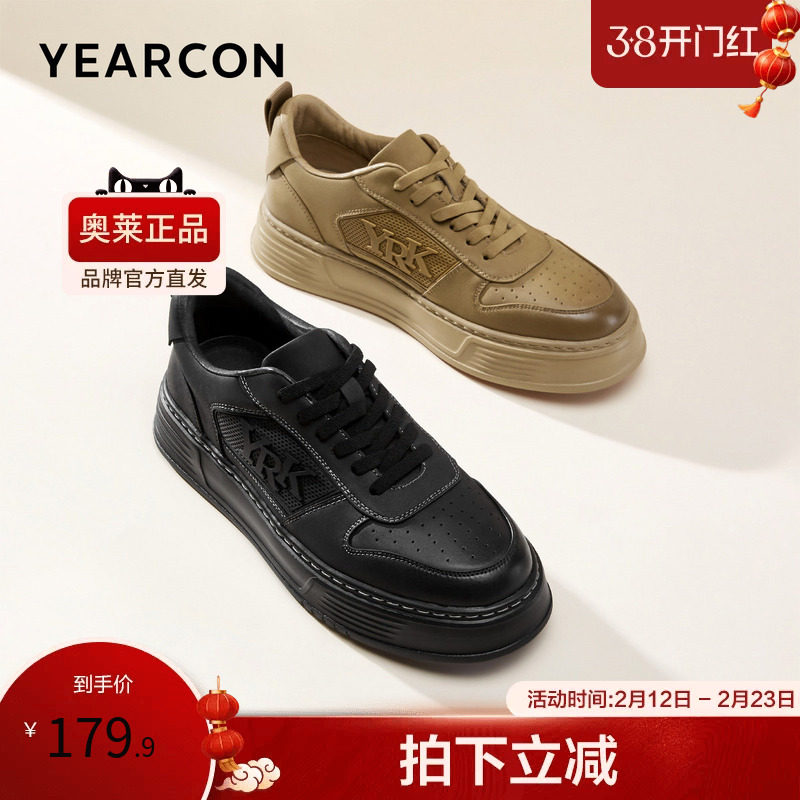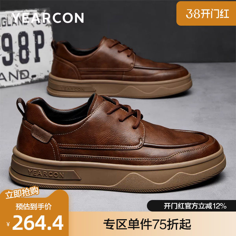 意尔康皮鞋2026春款时尚复古增高板鞋舒适百搭商务休闲鞋系带单鞋