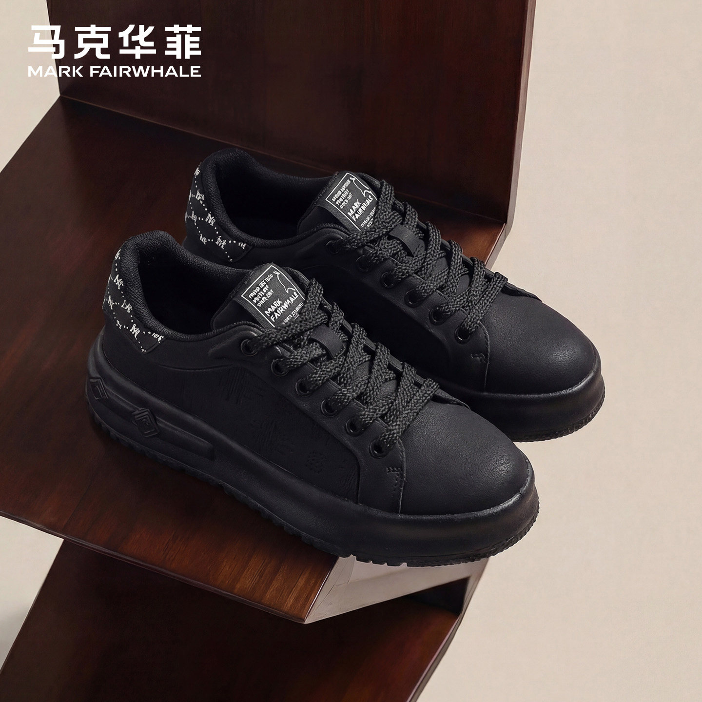 马克华菲男鞋2026新款男士黑色单鞋厚底休闲板鞋男款潮流增高鞋子