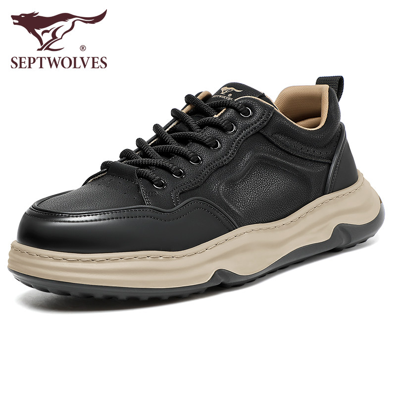 七匹狼男鞋休闲板鞋男款秋冬厚底鞋子纯黑色透气舒适运动鞋男单鞋