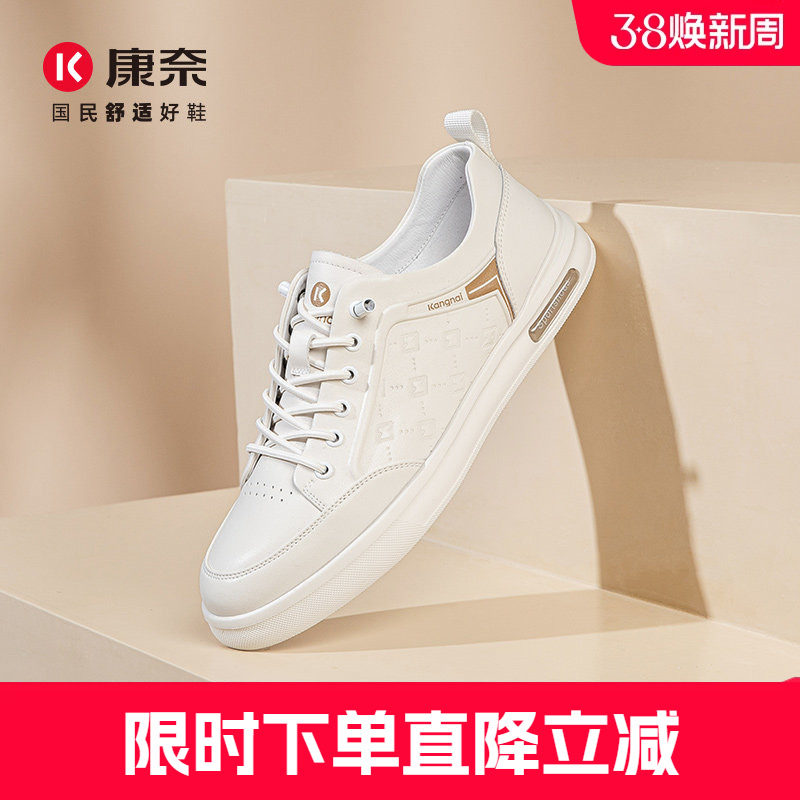 康奈男鞋春季复古舒适小白鞋子男款潮流深口单鞋百搭休闲平底板鞋
