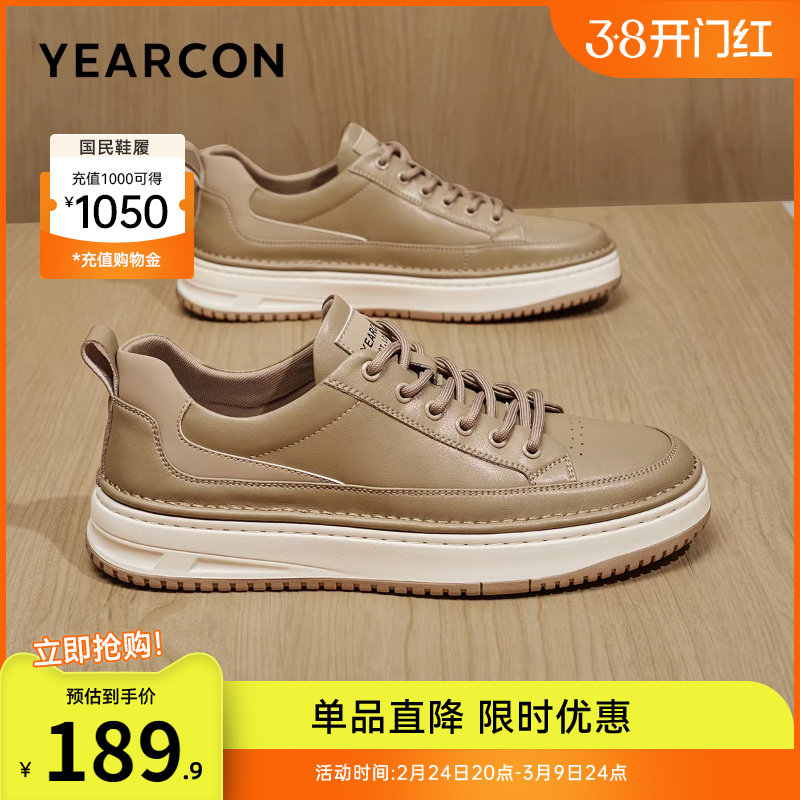 意尔康板鞋男2026春季新款头层牛皮时尚简约休闲鞋舒适免系带单鞋