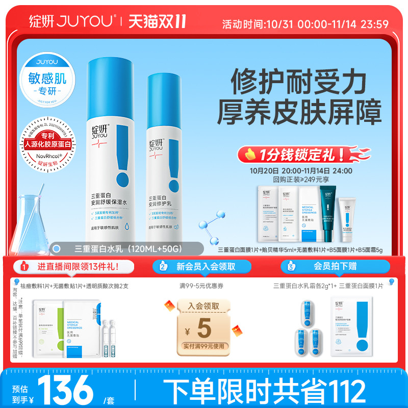 绽妍三重蛋白水乳套 保湿水 补水屏障修护乳 保湿乳液套装护肤品