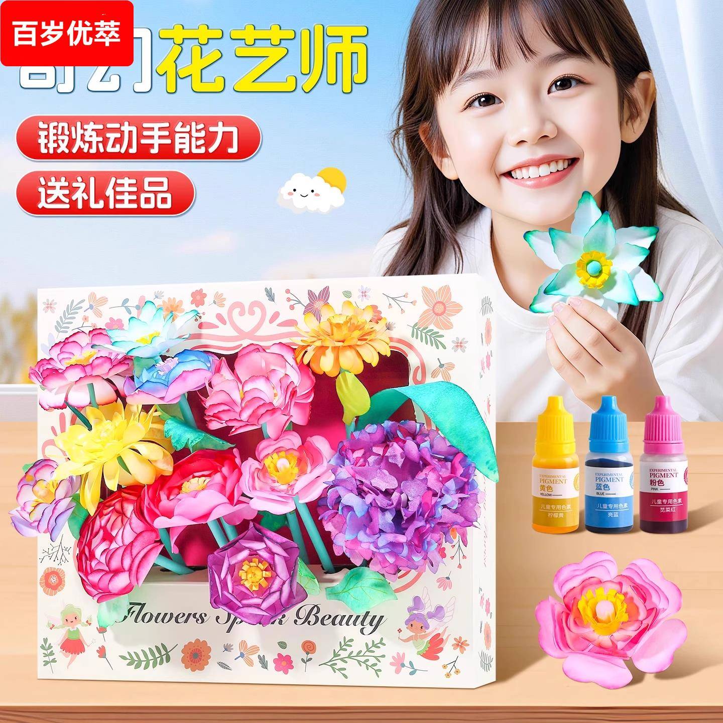 晕染花朵diy材料小小花艺师新款女孩无聊解闷小手工艺品儿童玩具