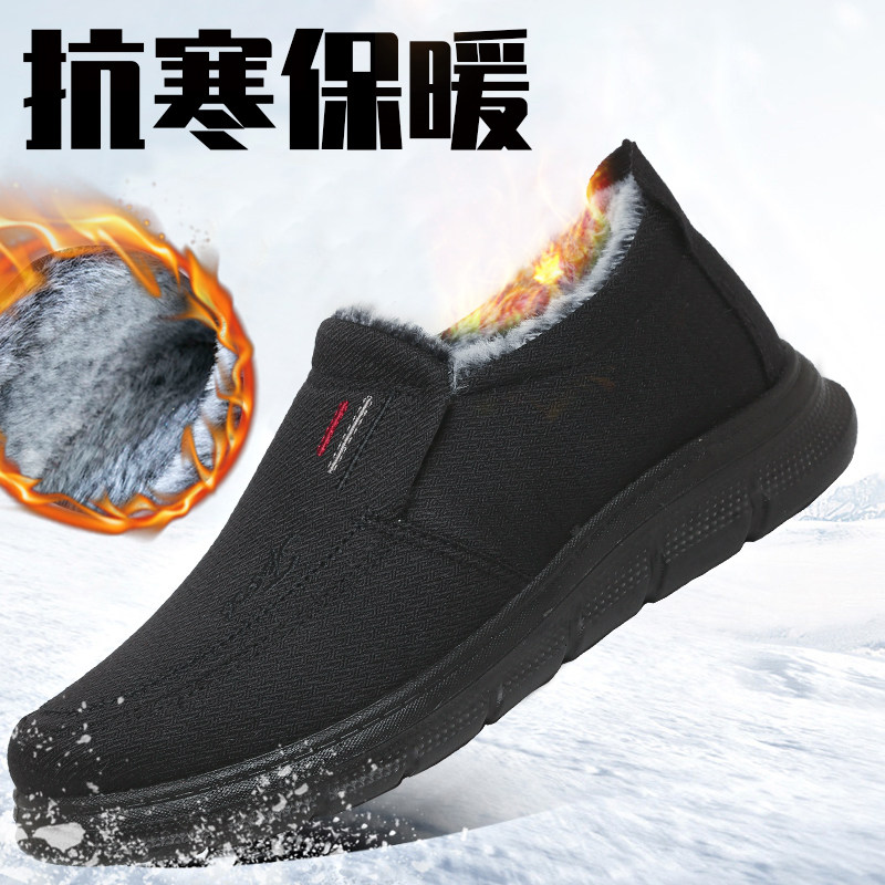 冬季老北京布鞋男士加绒加厚保暖中老年人一脚蹬防滑防水爸爸棉鞋